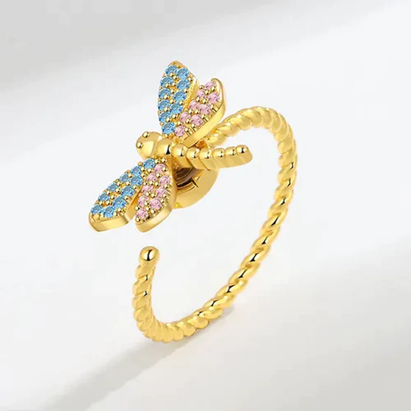 Anillo de Plata .925 con Chapa de Oro 18K con zirconias.
